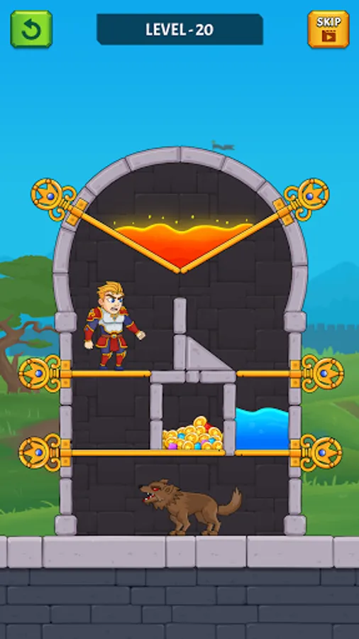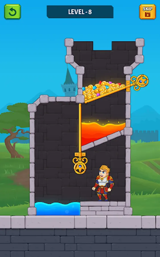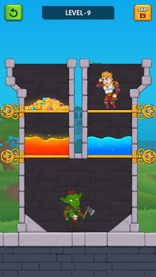 - Use your mindset to pull out the right pin to destroy all the mighty enemy then come next to the princess and treasure.