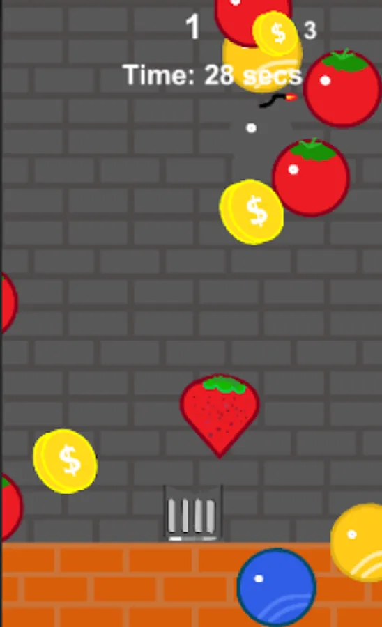 In timed you can collect fruit (strawberry & tomato) as well as coins while dodging bombs in 30 seconds. Powerups have a chance of falling giving you double points and +5 seconds