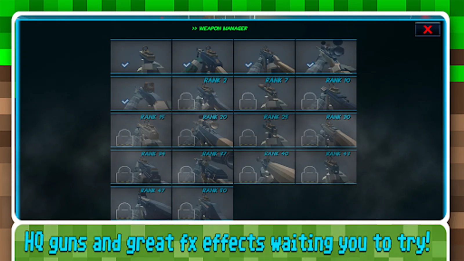 Rocket launchers, sniper rifles, and automated weapons are also among them. Plus, don't overlook your melee firearms' low-range utility. Have a blast, and I wish you the best of success! In the multiplayer Gungame Pixel, controlling the character and taking on Ai and human opponents is a breeze. Wonderful protagonists in a combat gunner video game, complete with smoke-filled arenas and hordes of enemies (including human troops and zombies) to eliminate. The 3D pixel world is very realistic. Five multiplayer modes are available: GunGame, Survival Wave Zombie, Team vs Team, You as a Zombie versus All Players and Enemy Ai, and Free for All. MODEL 24 PIXELATED WEAPON. - 1 map. A single-player first-person shooter's primary selling point is its 40 AMAZING LEVELS. - some stages have varying waves of zombie enemies that spawn at random times and locations, depending on the map and weapon. Free 3D arena shooting game starring blocky guns, playable on Android phones and devices.