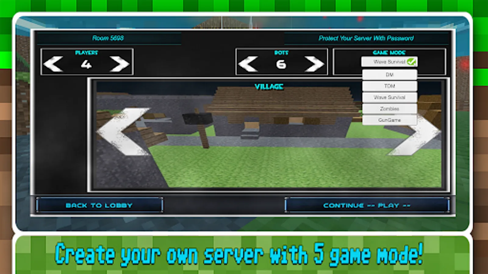 In this Edition of FPS blocky wars, you can use multiple guns (from axes to sniper) and play with friends on great maps.