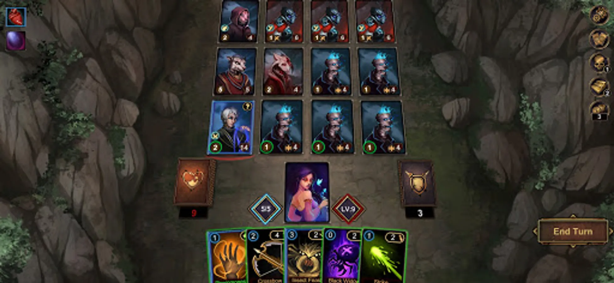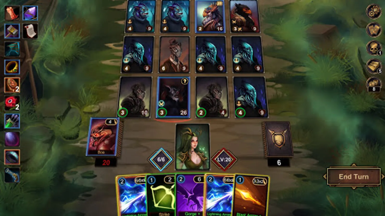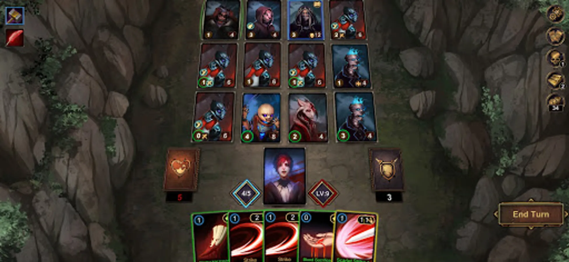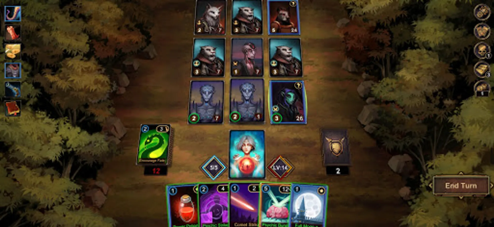 ●There are three types of cards in the game: attacks, skills, and curses. Being defensive is not an option against the the evils of the mist. Attack quickly and desperately to survive.