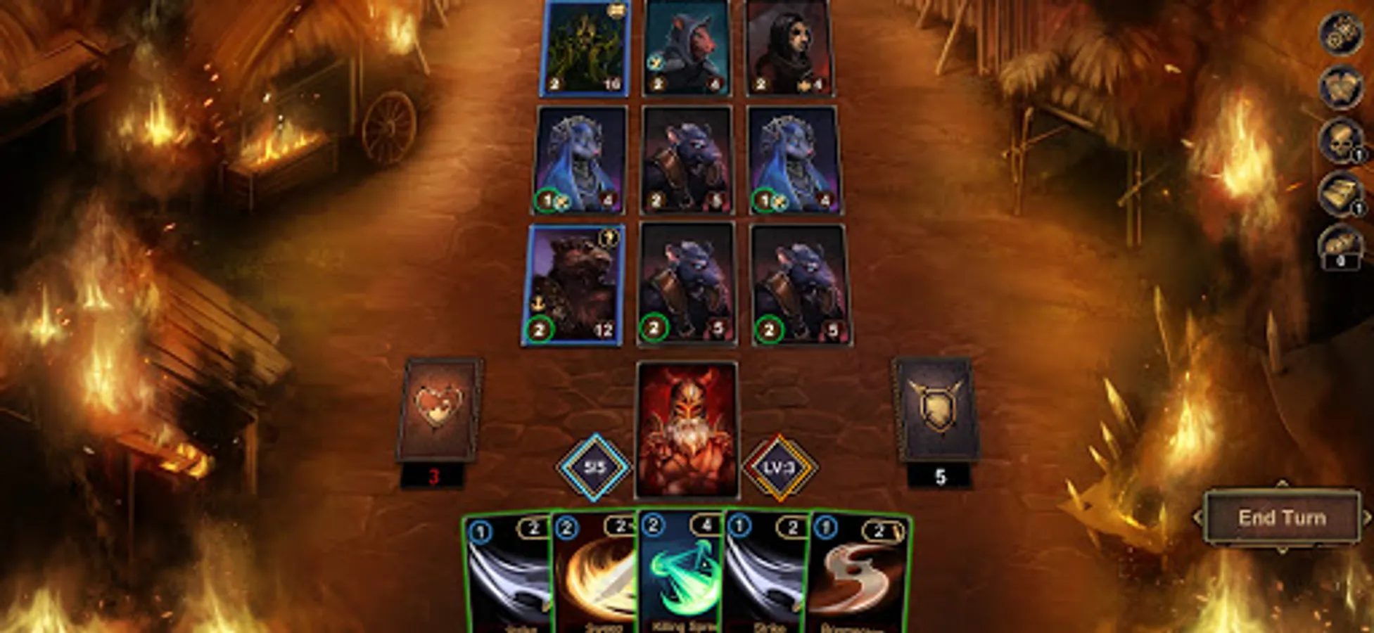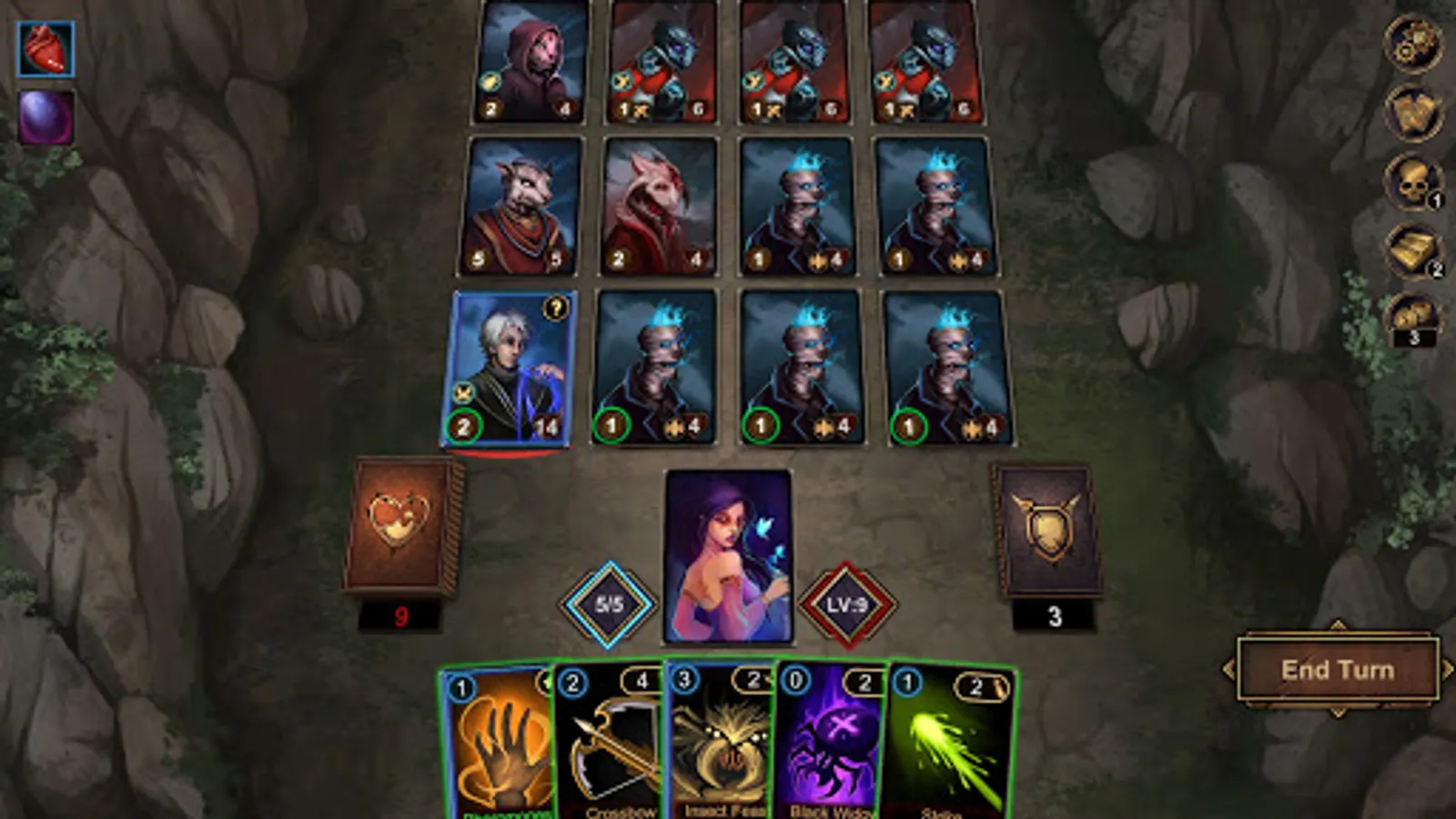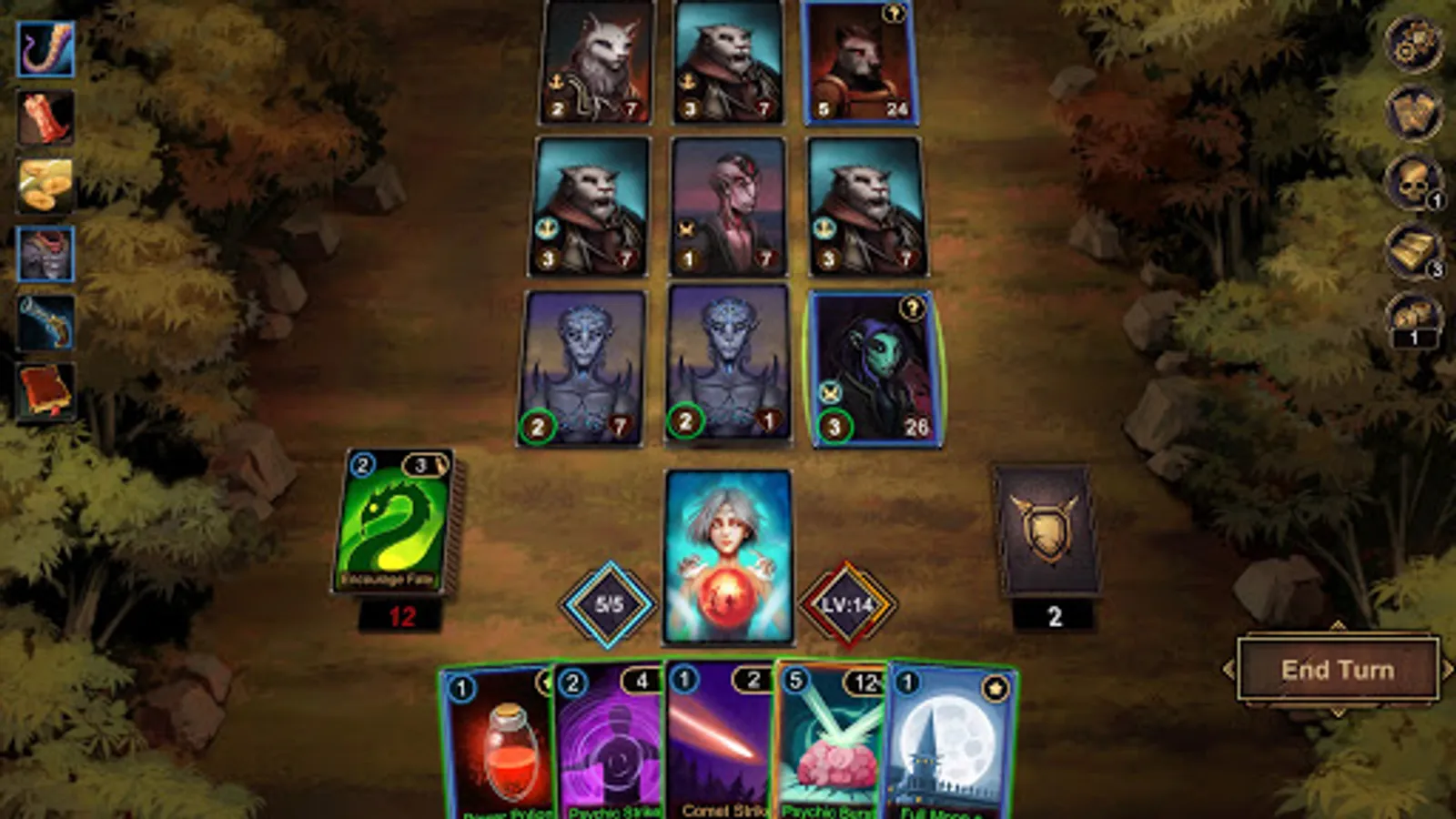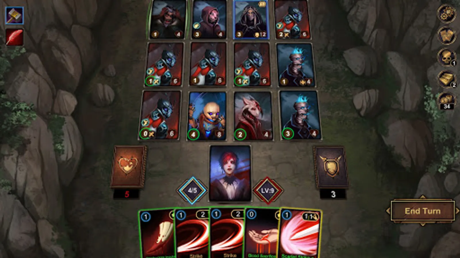 ●There are three types of cards in the game: attacks, skills, and curses. Being defensive is not an option against the the evils of the mist. Attack quickly and desperately to survive.