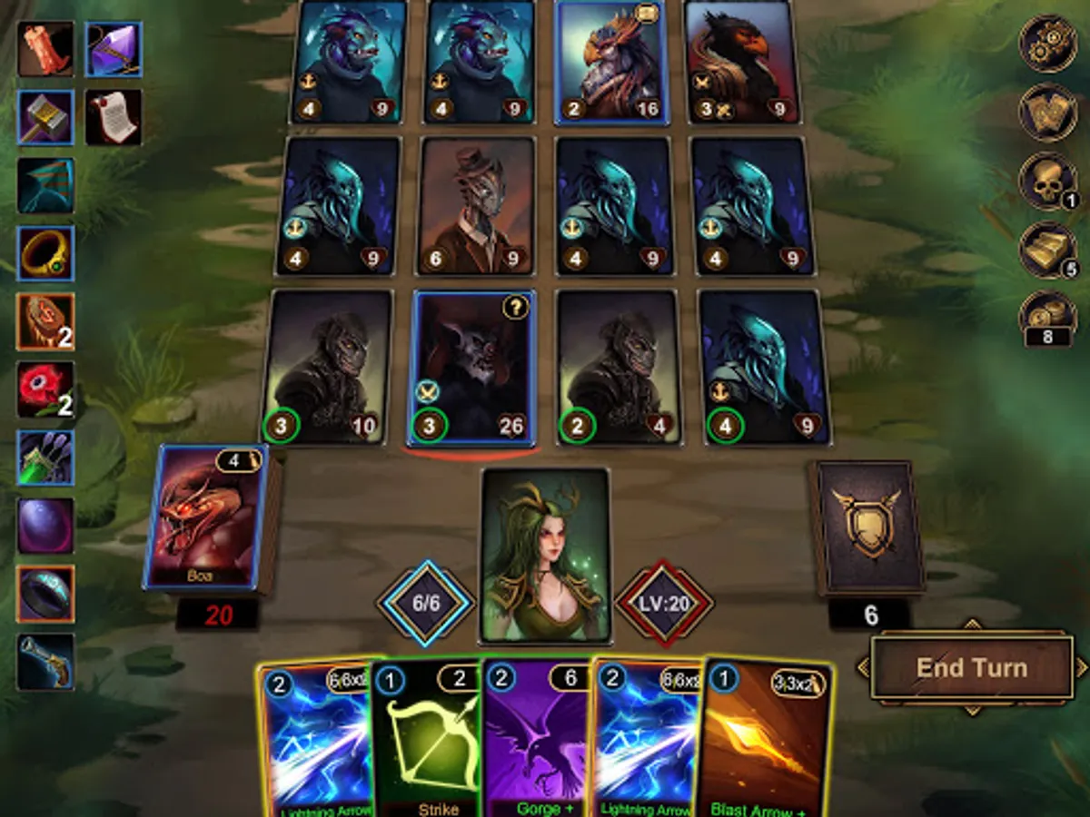 ● Gain exp and level up to add new cards to your deck as you defeat monsters.