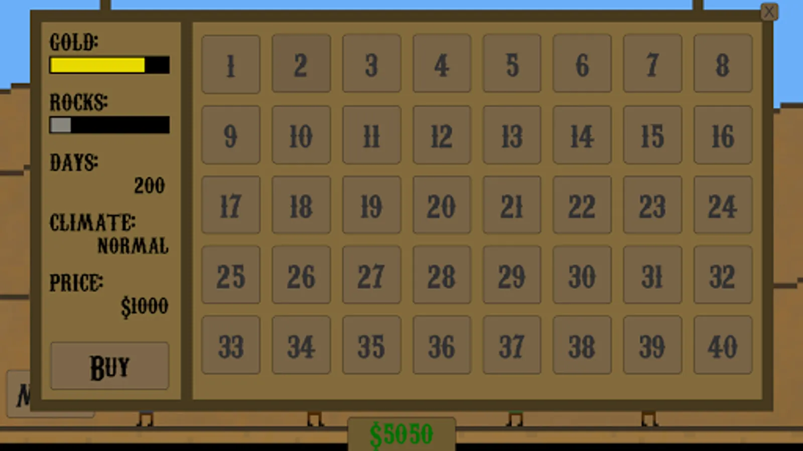 Gold Miner Tycoon is a game where you try to make money with gold mining. You have made some money, and you decide to invest it in your own gold mining company.