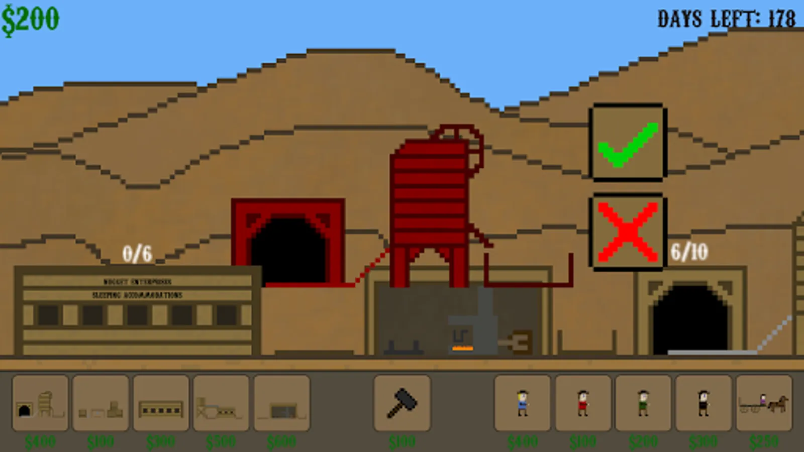 You start with some money. You buy a piece of land from the land owner and you can start your mining season. You have to invest your money into a mine, a washing installation and a smeltery. You also have to pay for a crew, and make sure they have a place to eat and a place to sleep. Then, the money will start to flow in! When you have a good amount of money, you can buy upgrades. They will help your buisness a lot!