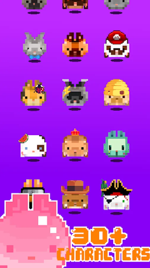 Chose from over 30+ Playable Characters and Unlock Legendary Skins in this Unique Pixel Runner.