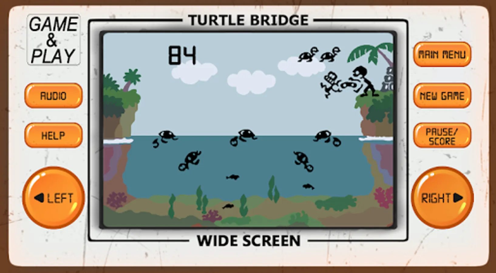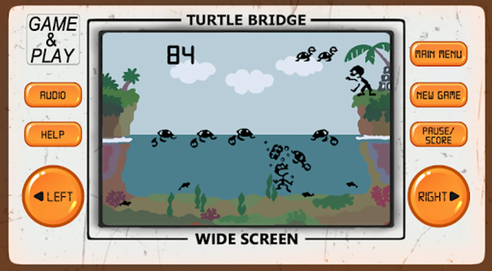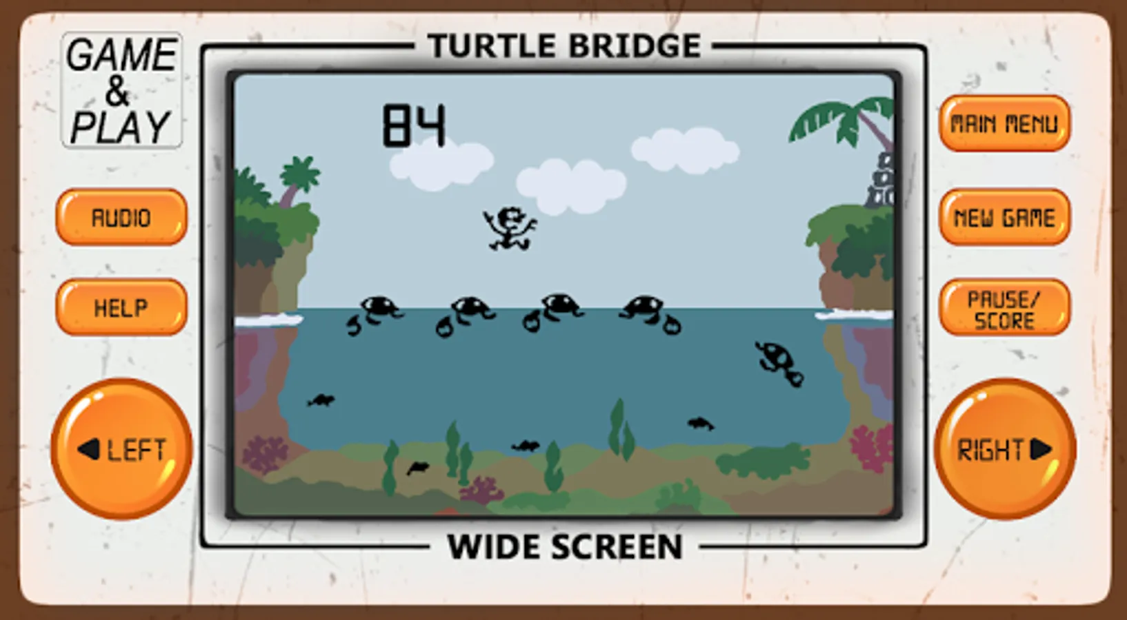 Turtle Bridge arcade game is an 80's arcade style game of retro classic arcade games from the 80's and 90's, developed to look and feel like LCD screen classic old-school electronic arcade games.