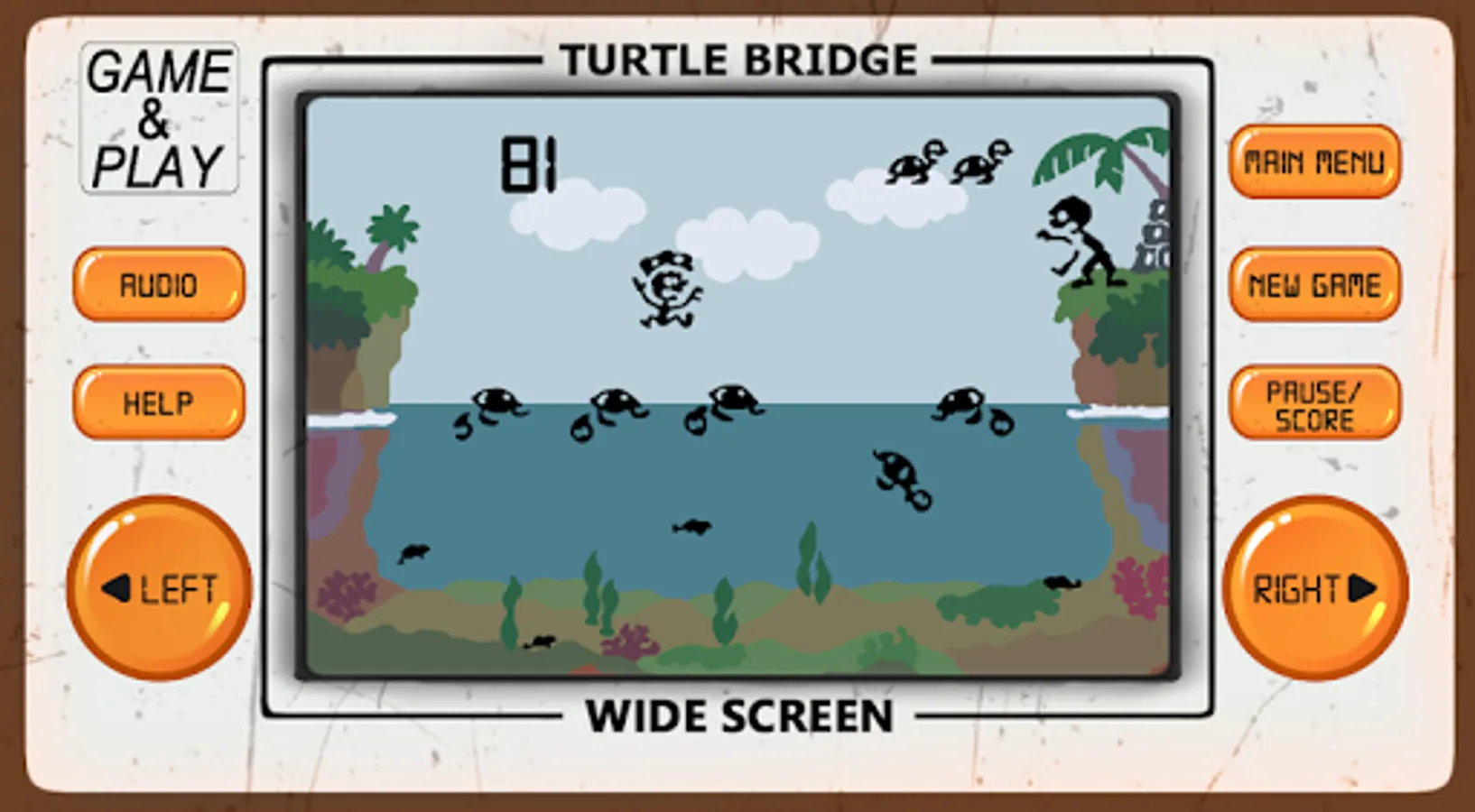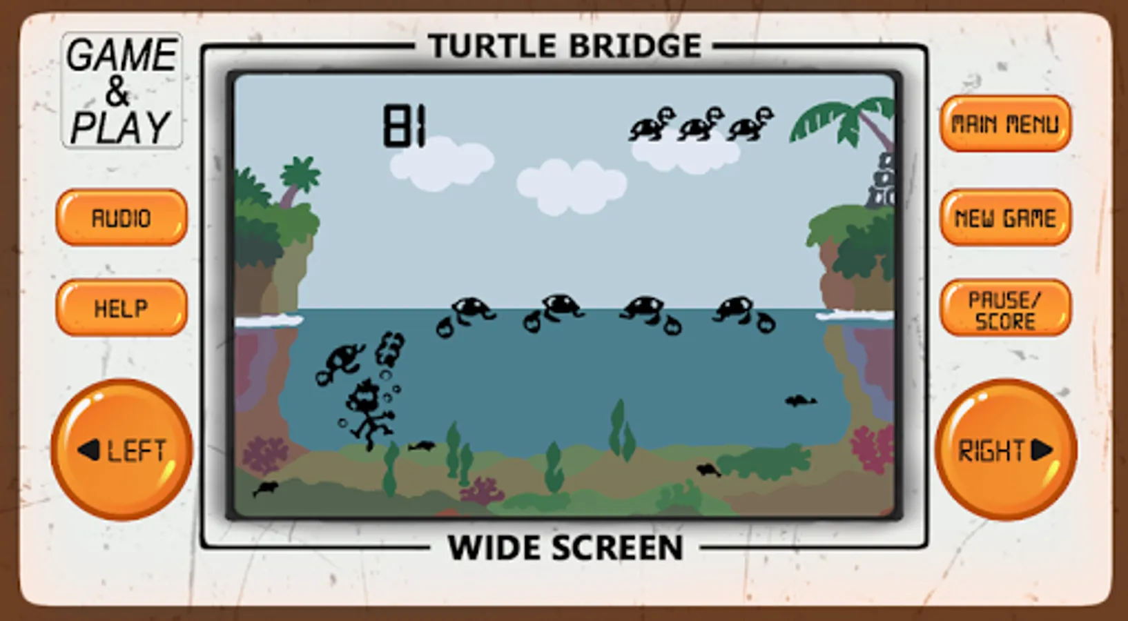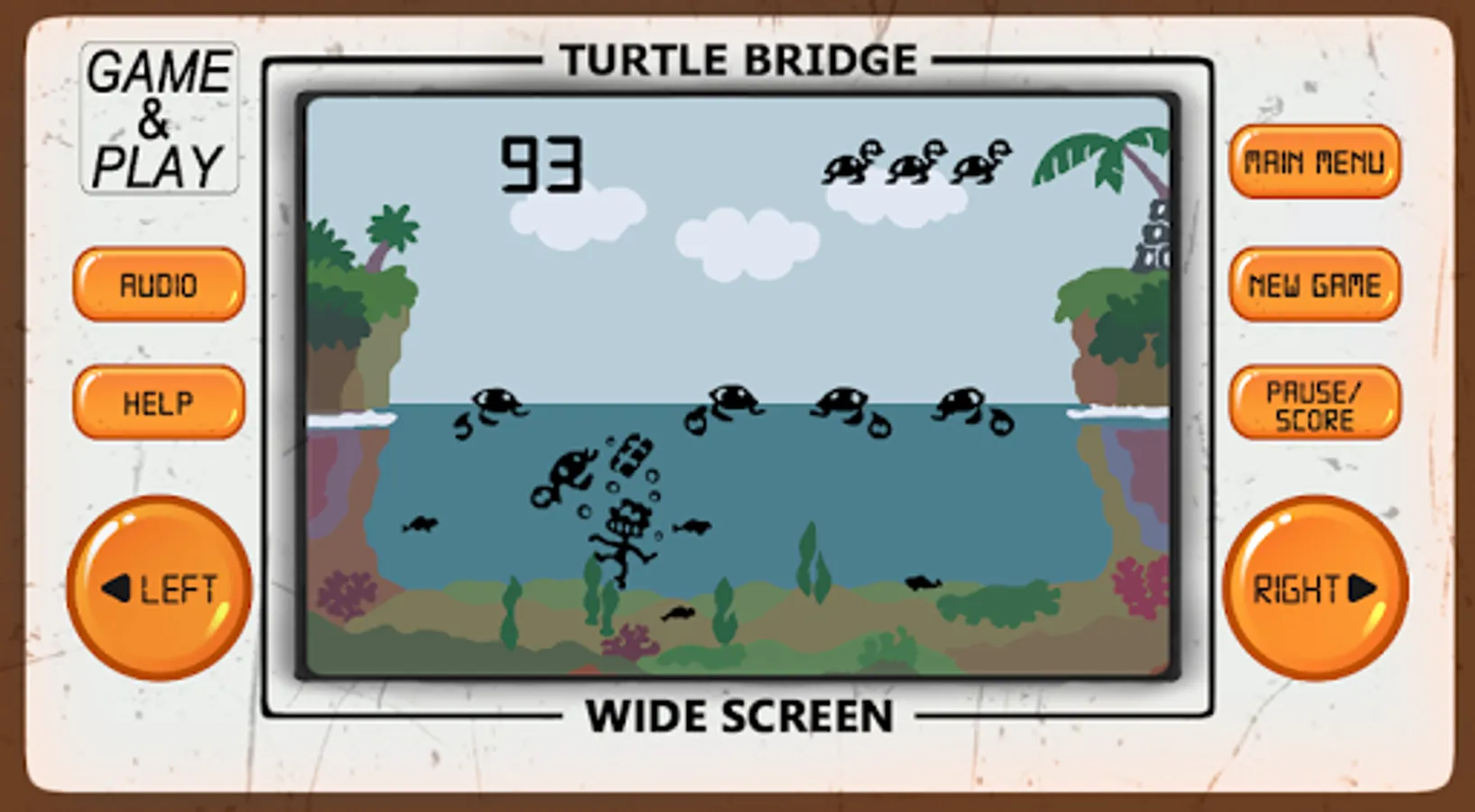 Turtle Bridge arcade game is an 80's arcade style game of retro classic arcade games from the 80's and 90's, developed to look and feel like LCD screen classic old-school electronic arcade games.