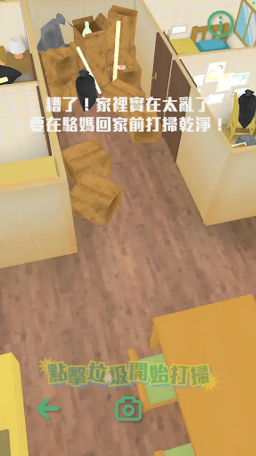 阿甯咕所製造的機器人將家裡弄得到處都是垃圾,快在駱媽回家之前將家裡打掃乾淨!