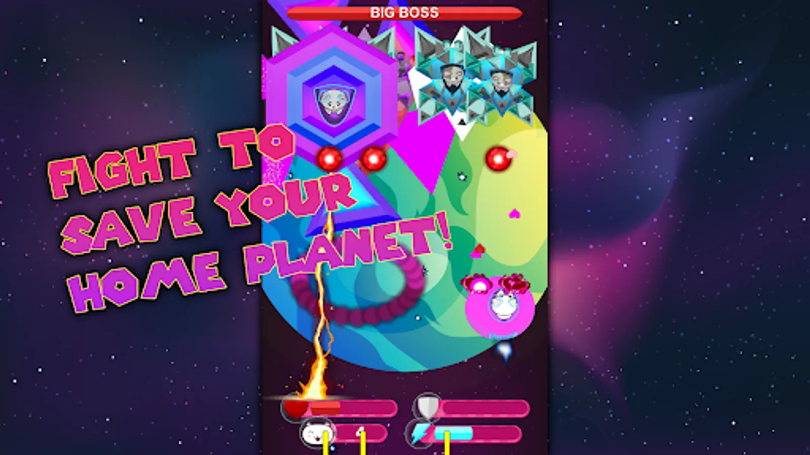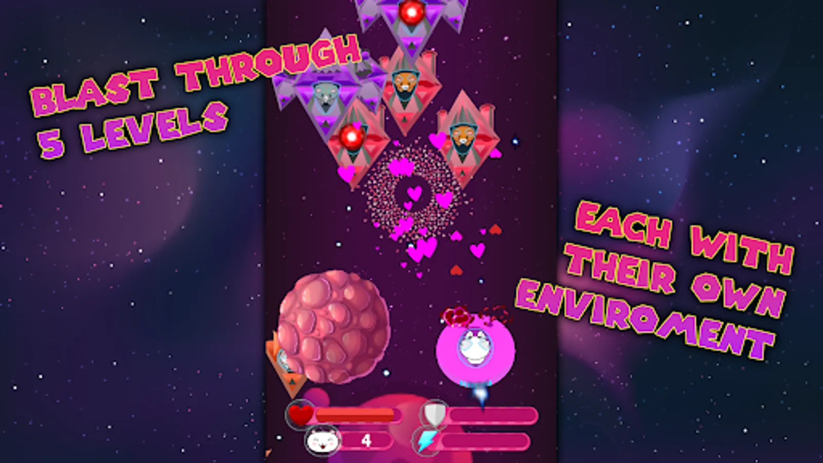 Big Boss is back and he's taking over the solar system. You'll have to fight your back through 5 planets loaded with bad kitties in space ships. Collect power-ups like Shields and Energy rings.