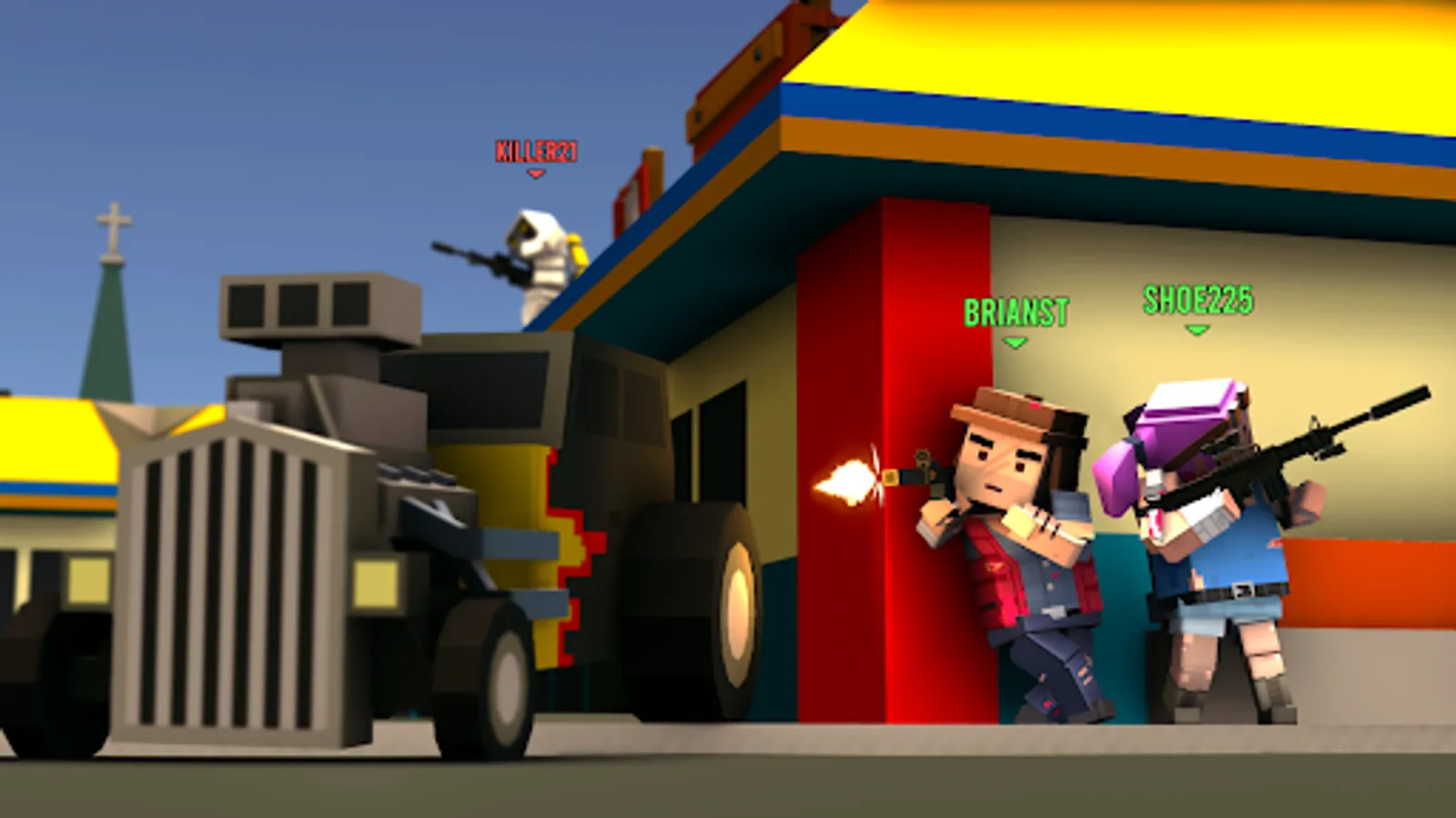 Online open game mode is an intense and exciting style of action games. Large open world map in online multiplayer games mode. Entering inside the city is easy to experience fast action games fun and pixel cube style offers cool open world war games fun.