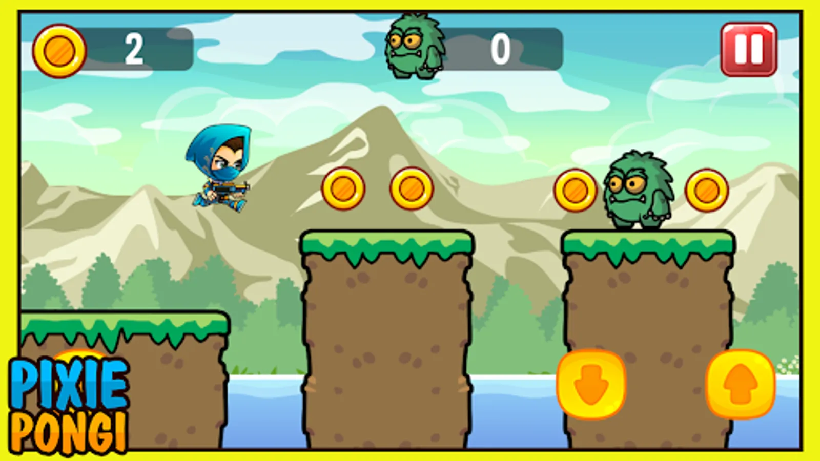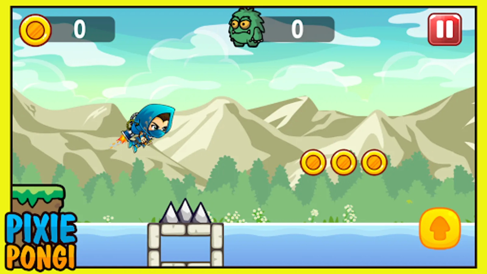 Pixie Pongi - Help the Blue Ninja Save the Forest by destroying monsters, collecting gold and dodging the spikes, traps and other obstacles, use cool boosters and get the best score to survive!