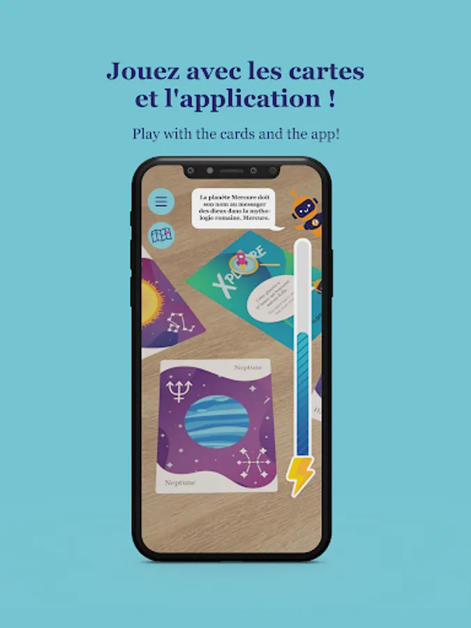 After downloading the mobile app, the user is invited to scan their favorite playing cards using the camera. The goal is to learn more about the solar system, while having fun with a variety of mini-games. The more mini-games the player completes, the more energy his spaceship will have to return to the space station. Xplore Space promises a visual, sound, sensory and immersive experience that will lead young people to develop their knowledge.