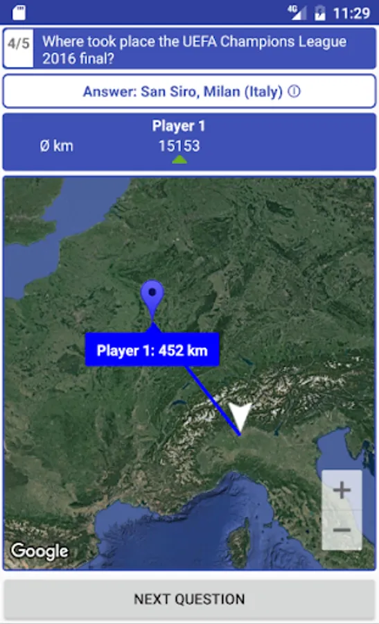 The average distance in kilometers of all questions is evaluated. If you are good enough, you can set an entry into the highscore.