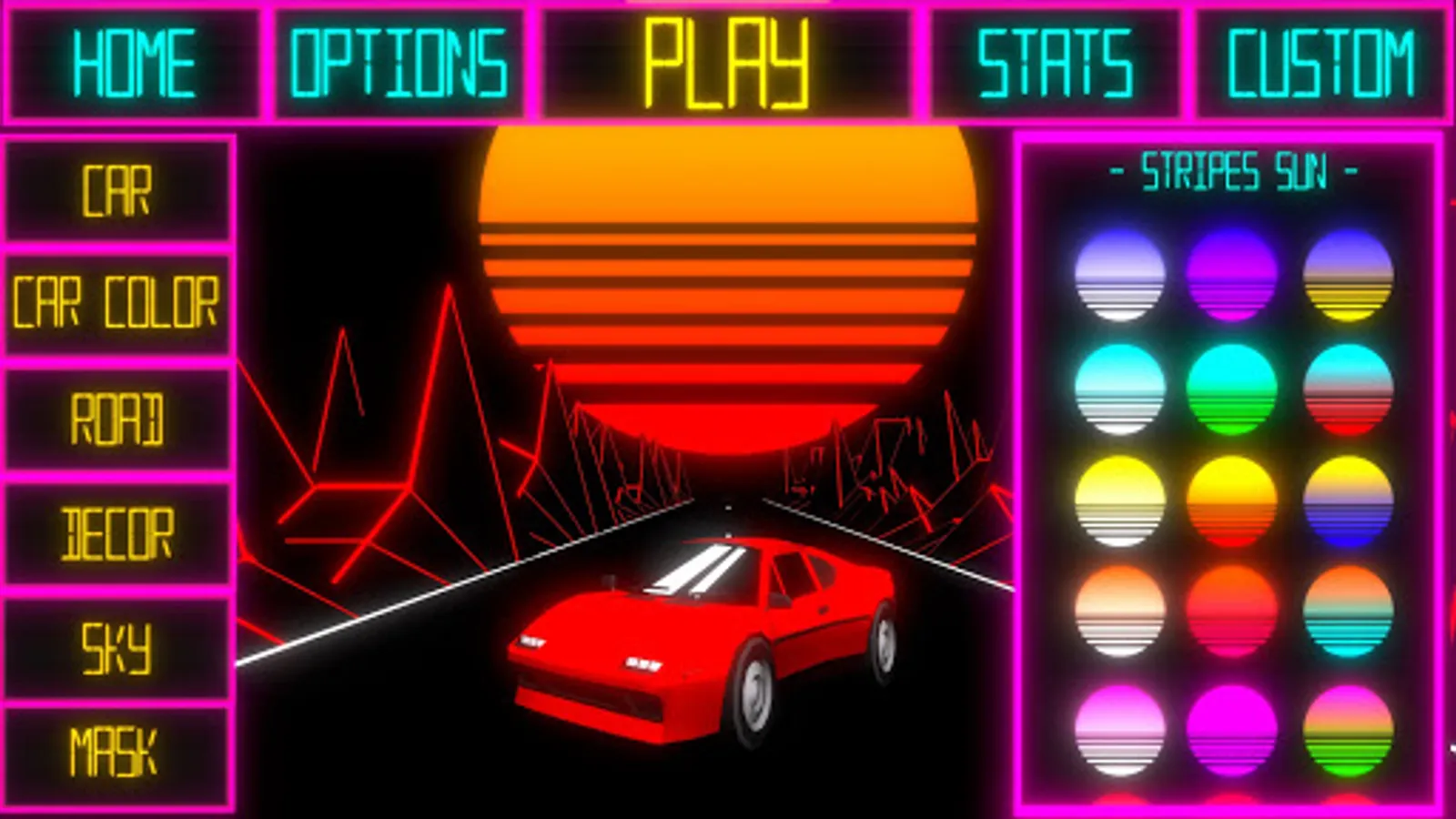 Go at full speed in this rhythmic game in a real Synthwave atmosphere.