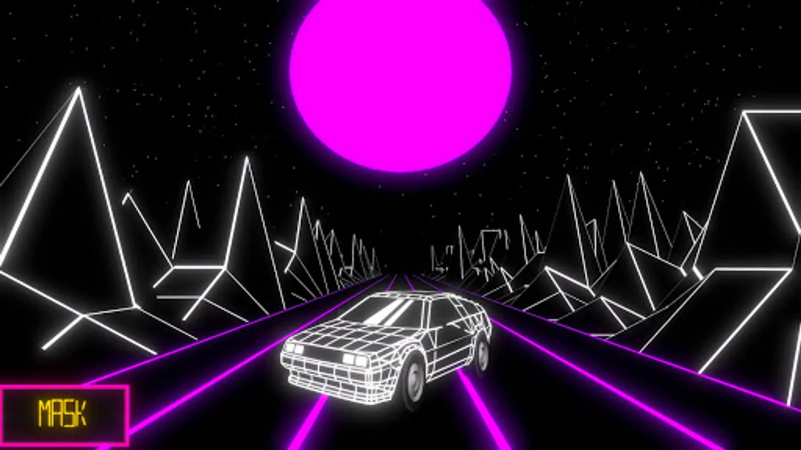 Beautiful and futuristic graphics in the style of the 80s and the retrowave.