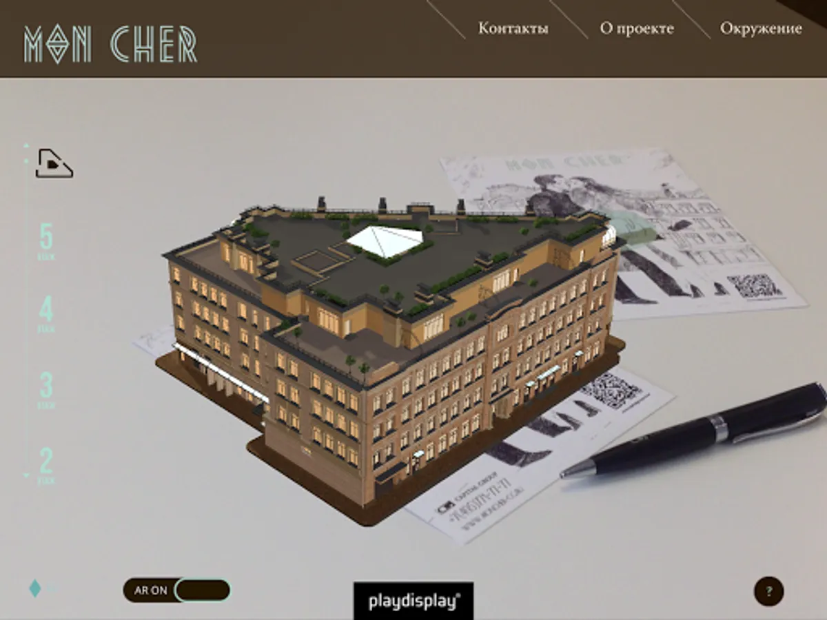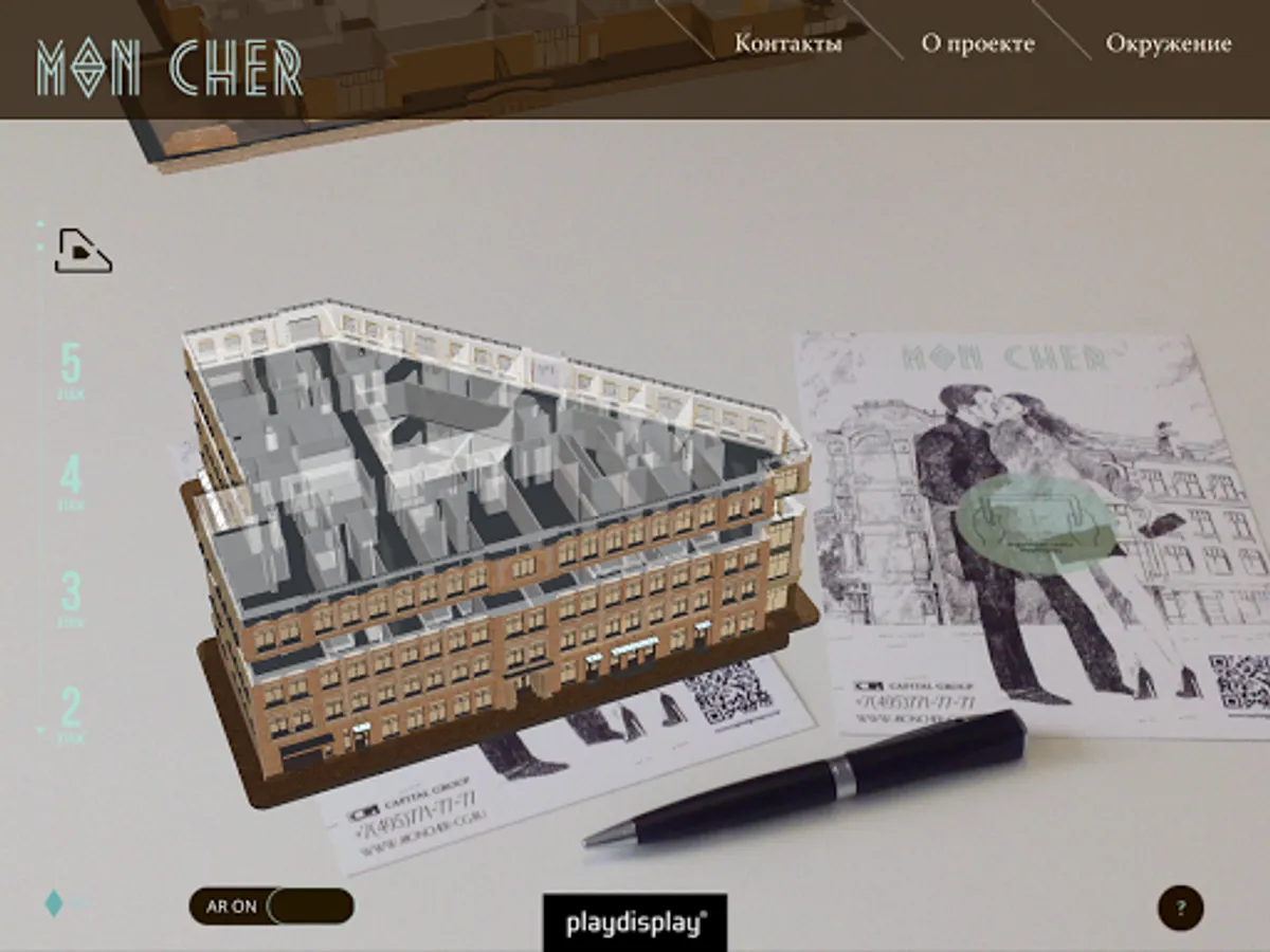-AR mode is on when you scan a marker with your smartphone or tablet (download the marker at http://www.moncher-cg.ru/)