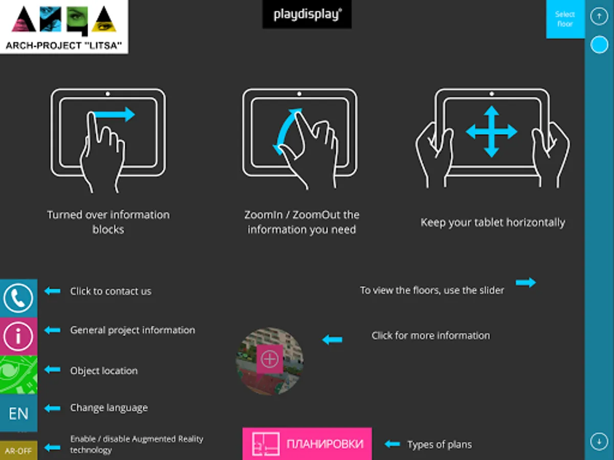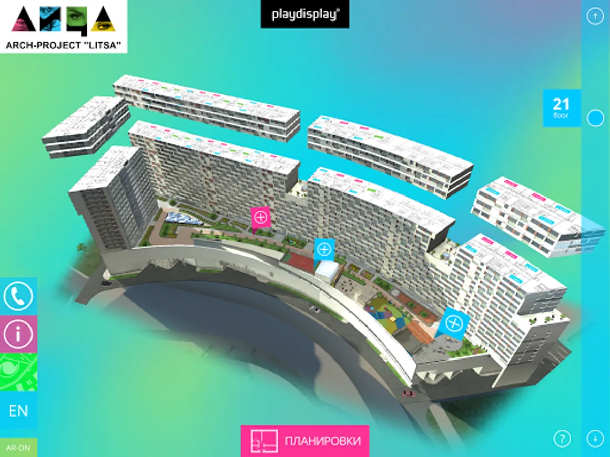 - AR mode is on when you scan a marker with your smartphone or tablet (download the marker at www.capitalgroup.ru or www.cg-litsa.ru)