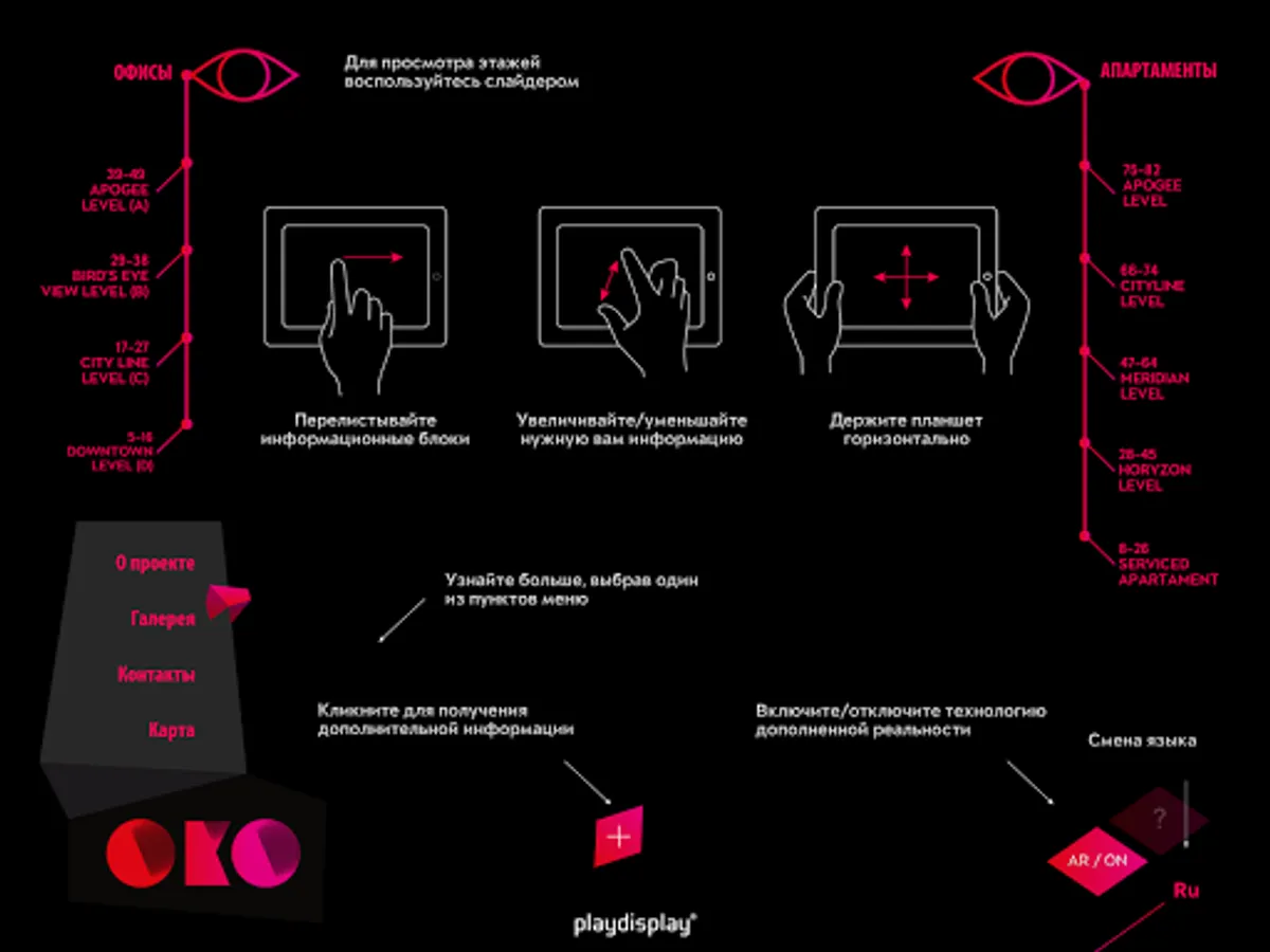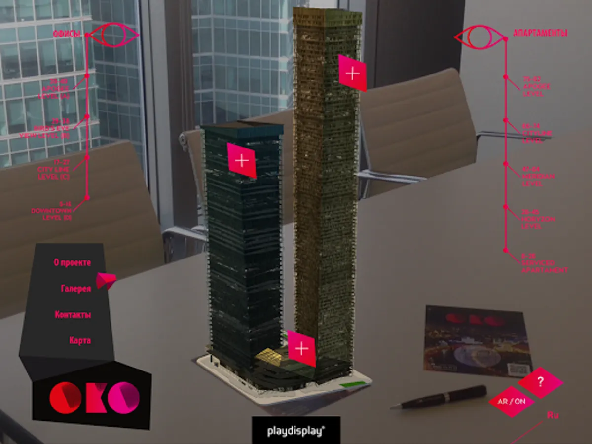 - AR mode is on when you scan a marker with your smartphone or tablet (download the marker at www.capitalgroup.ru or www.oko-capitalgroup.com)