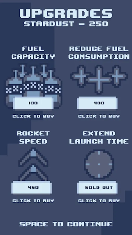 Blast off into space, avoiding asteroids and collecting stardust to proceed, the further you get the more stardust you collect after each run, use stardust to upgrade your rocket and keep going until you reach the Moon