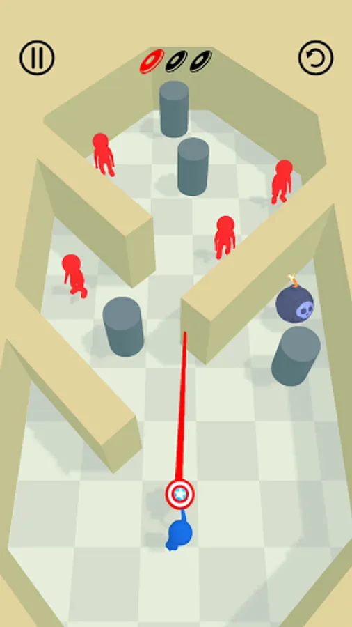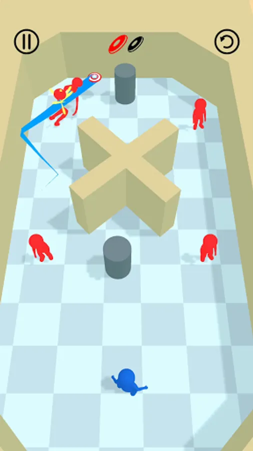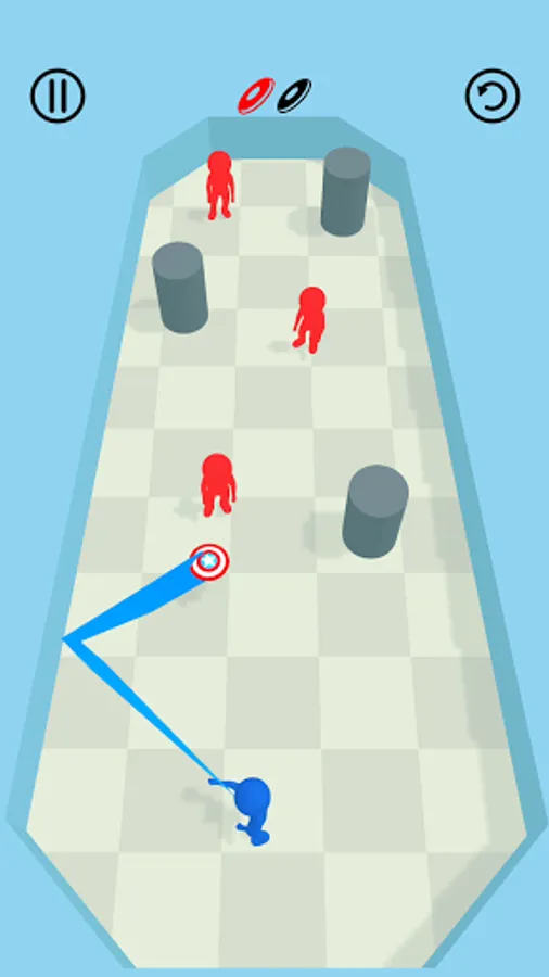 Throw the bouncing frisbee to slice through all the enemies. Can you get them all with a single toss?