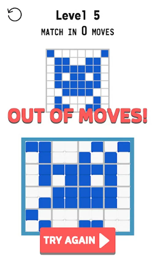 Swipe on any tile row or column to match it to the shape on top. Each level has a limited number of moves. Can you do a frog in four? A coffee cup in one? Harder than you think!
