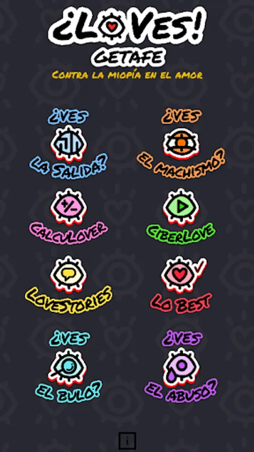Do you dare with the challenge of love? To give you a note? And your partner? Would you know how to escape from the labyrinth that is love that is not cool? And on top of that, “the monster and the girl” have been drawn by young people your age from Getafe*! The APP YOU-SEE IT! He plays, already in his own name, with the idea that sometimes love (LOVE in English) is blind... and prevents us from SEEing good Love.