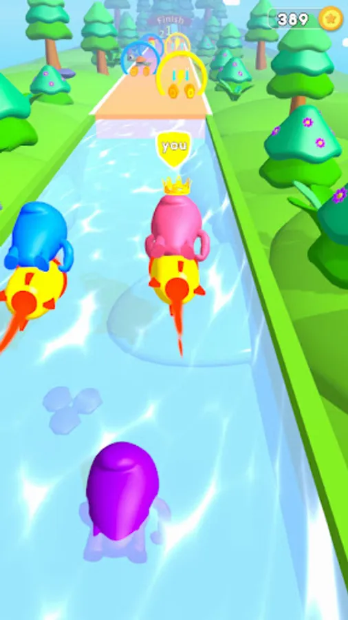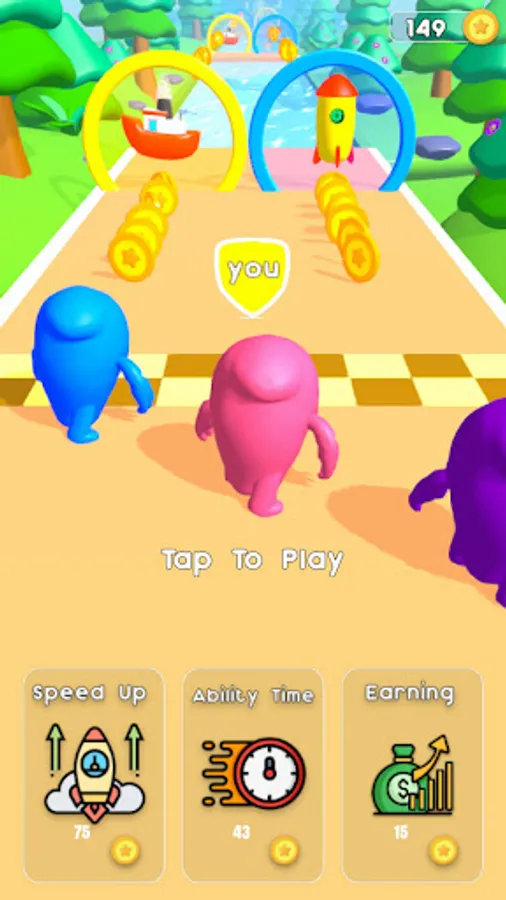 You need to decide whether you champ should swim through water or should take a boat. Your champ can climb on mountain bare handedly or can use jetpack ability to climb over mountain peaks quickly. Unlock new abilities by going through different gates. Go through correct gate to unlock superior abilities like flying with jetpack or rocket to go faster. Decide carefully what ability you get. Using rocket to fly gives you very high speed boost and can help you win the race. Make your cute pup a racing champ who can fly with rocket or give him a boat gadget to go faster than other swimmers.