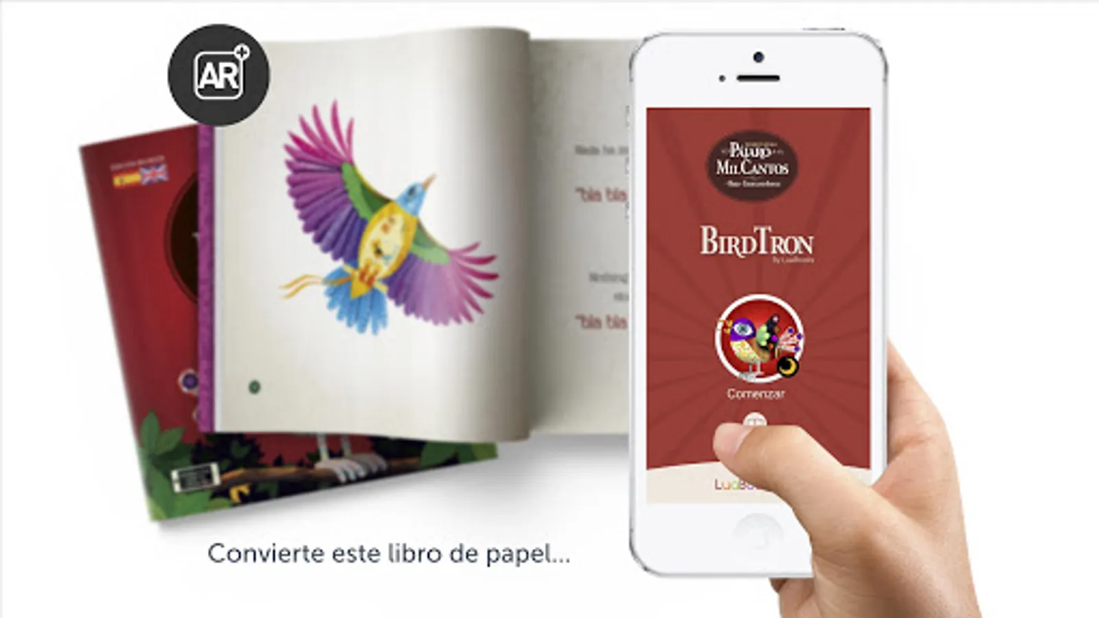 LuaBooks introduces BirdTron®. A wonderful experience that combines the universe of the paper book with the digital world. Use your cell phone to see the images as in a fantastic 3D PopUp book and listen to the song of each of the birds that make up this beautiful story.