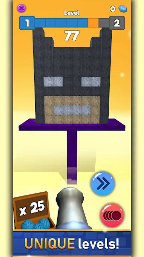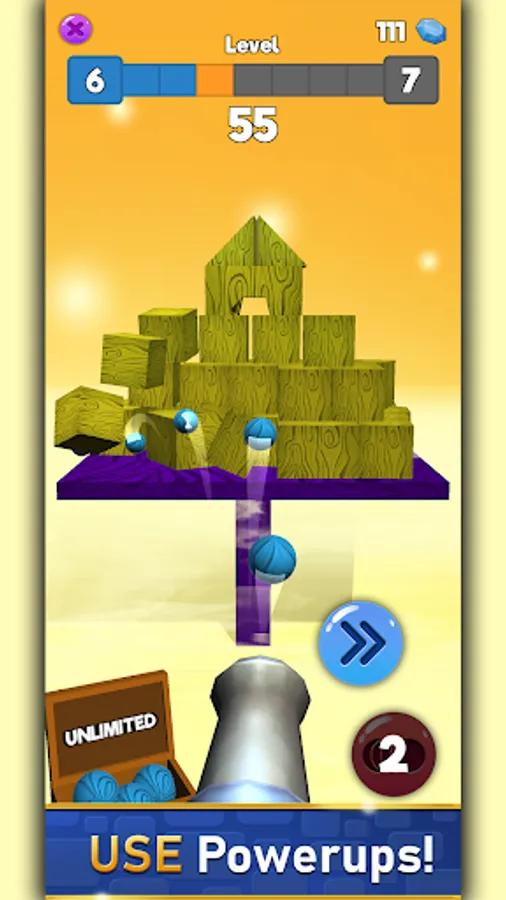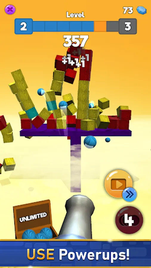 Throw balls and knock all of the blocks to advance to next level. You have limited balls each level so if you are stuck, use power-ups to advance!