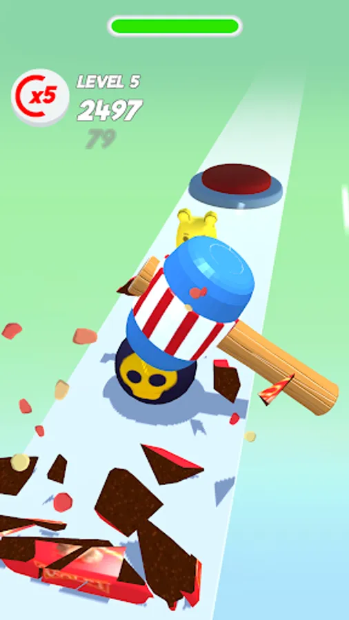 Tap to smash candies with hammer and advance to next level. You can use power-ups to move faster but aware of the bombs!