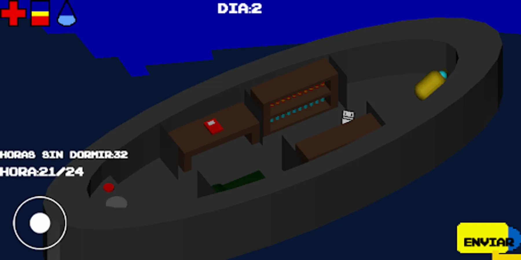 Survive on a Submarine is the story of a sailor who gets trapped in a summary for 73 days (easy), 145 days (normal), 290 days (hard) with 22 cans of food and water. Your task as a player will be to keep the sailor alive until his rescue.