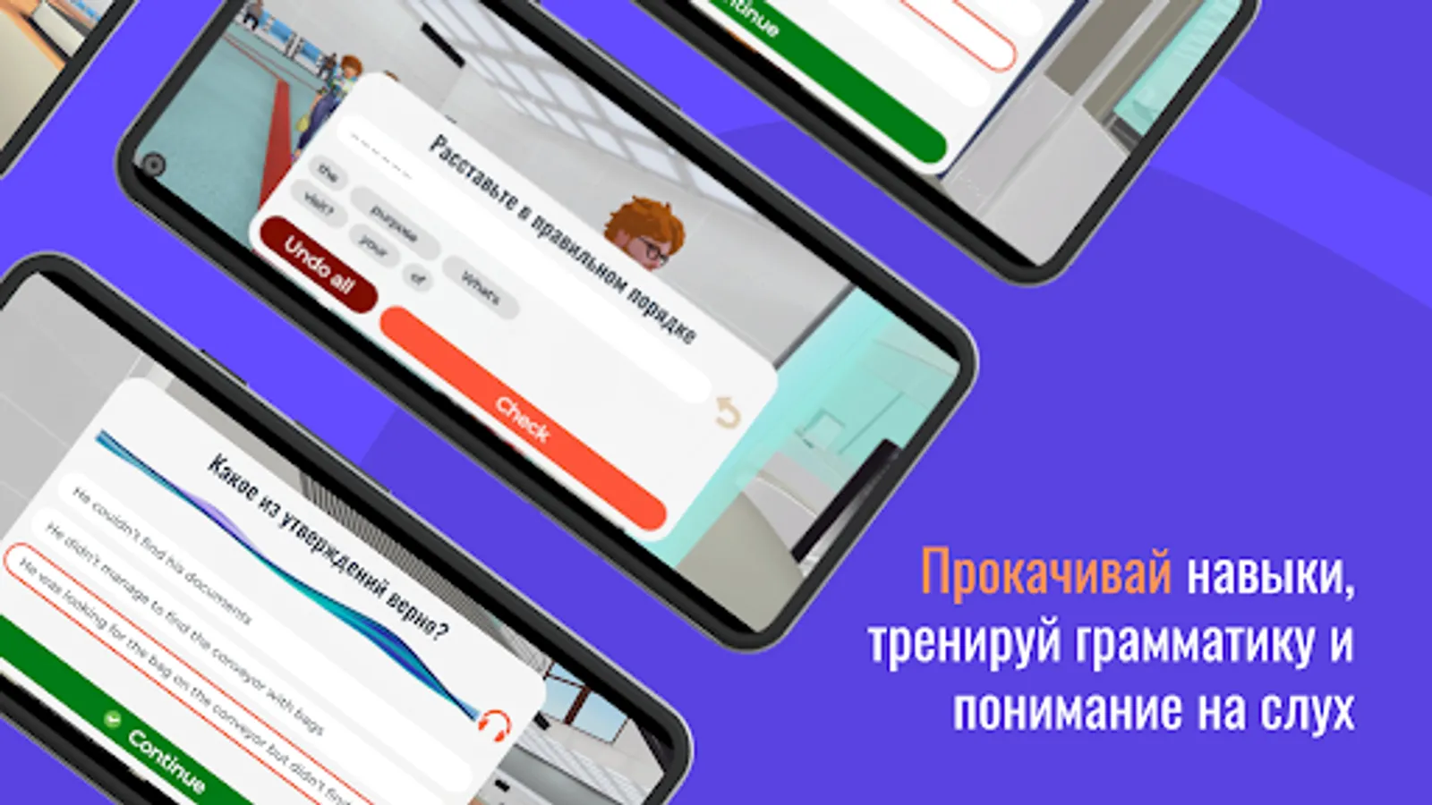 Playlang is a new interactive environment that will help you learn English from real situations. Learning a language with us is interesting, not boring, and most importantly - effective. You will learn live colloquial vocabulary, learn how to use it in context, improve grammar and the skill of recognizing English by ear.