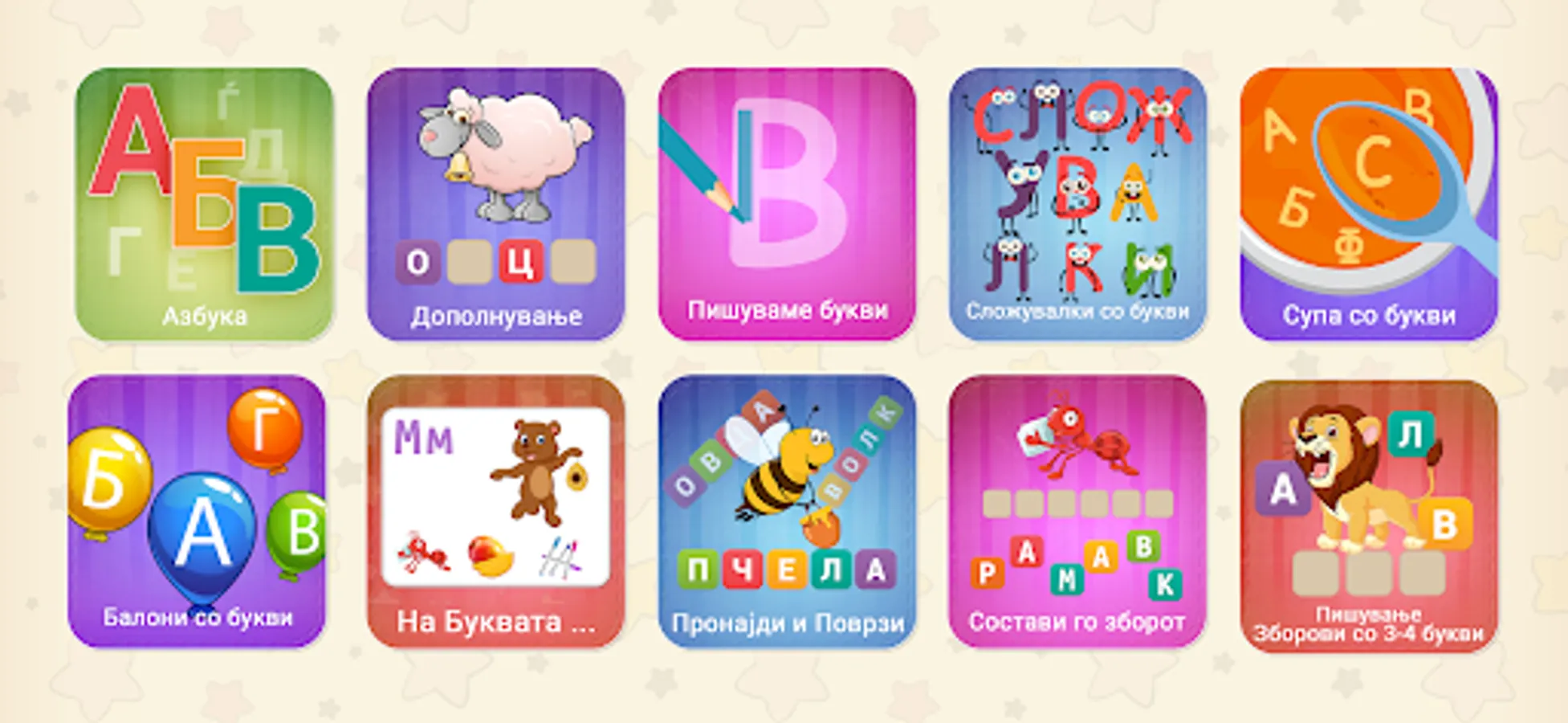 Апликацијата е наменета за дечињата од предучилишна возраст и првата година од училишната возраст, но и за работа со деца кои не посетуваат предучилишни установи но сакаат да ги усвојуваат вештините за учење и составување на едноставни зборови од македонската азбука а со тоа и полесен развој на нивните говорни вештини.