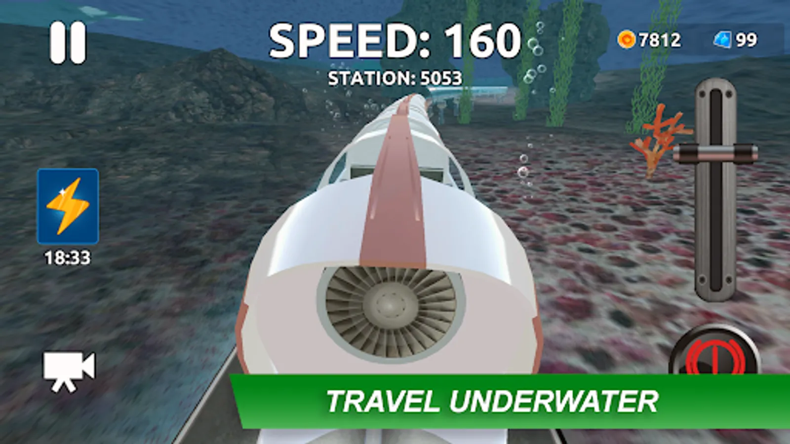 Run a train, which moves at cosmic speeds up to 1220 kilometers per hour from one train station to another train station. Change the speed of trains, change the camera view, stop at stations and pick up passengers. Carry passengers and cargo in the carriage to earn coins!