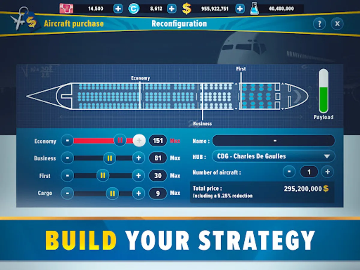 ✈ Boost the management of your airline by negotiating hard with other players on the second hand market.