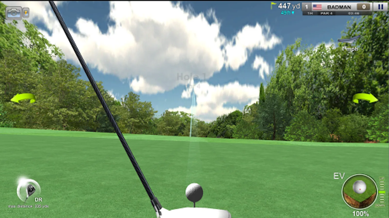 There are 2 difficulty modes. In the easy mode, a graphic is overlaid on the screen for you showing the likely path of the ball through the course. In expert mode, you must rely on your intuition with distances to the hole and how far your club will take the ball at maximum power on your current lie.