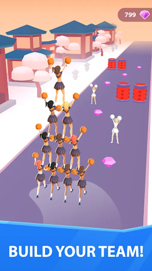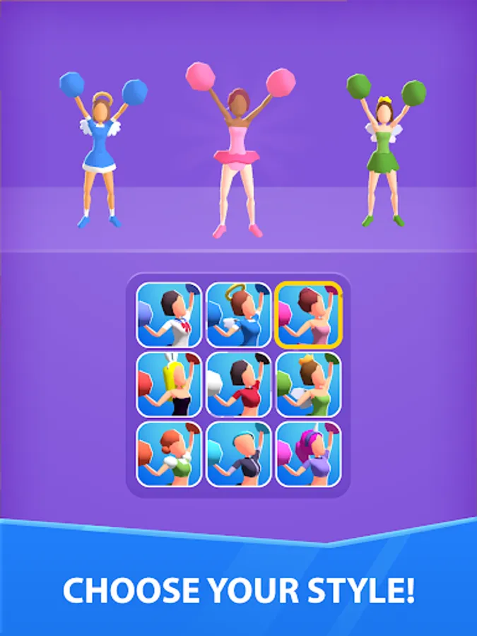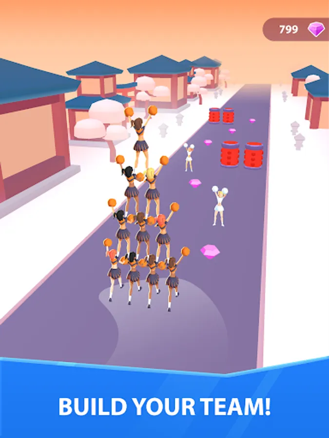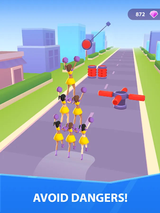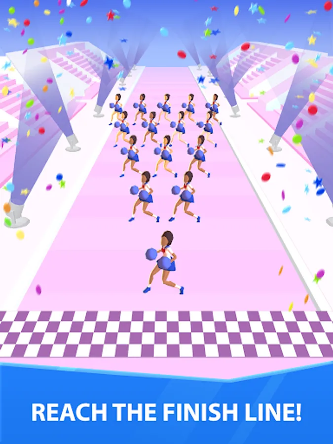 Recruit other cheerleaders, avoid obstacles and collect gems on your way to Victory!