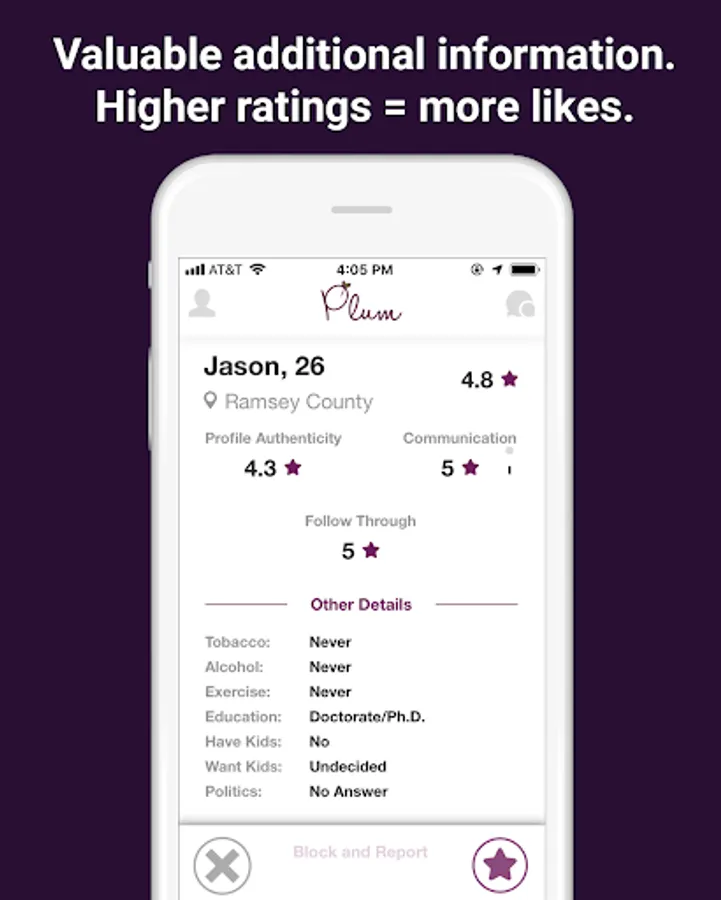 *The Plum algorithm rewards men based on their rating - the higher the rating, the higher in the Plum match deck - which equals more match potential!