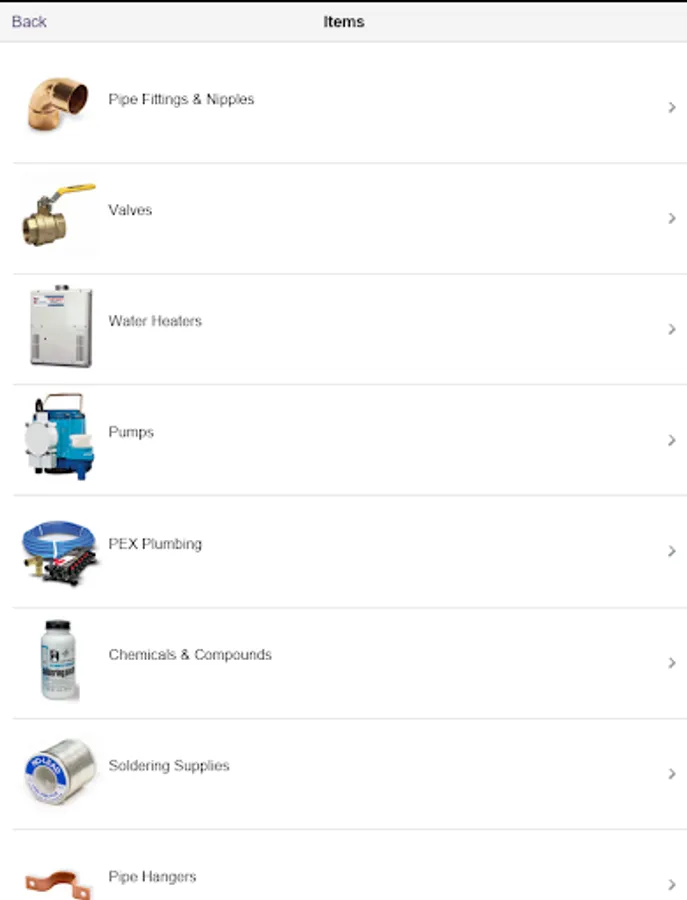 Here are some of the most common product categories featured in the plumbing invoices app:
