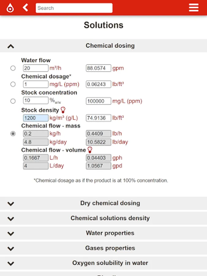 Plutocalc is the most complete and popular calculator for water treatment, wastewater, hydraulics, environmental chemistry and unit conversions. Plutocalc calculations were carefully tuned to require minimal inputs and provide accurate results based in the latest advances of science.