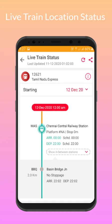 Using this Indian Railways Pnr Info-Live PNR Status Tickets app check live train location status.