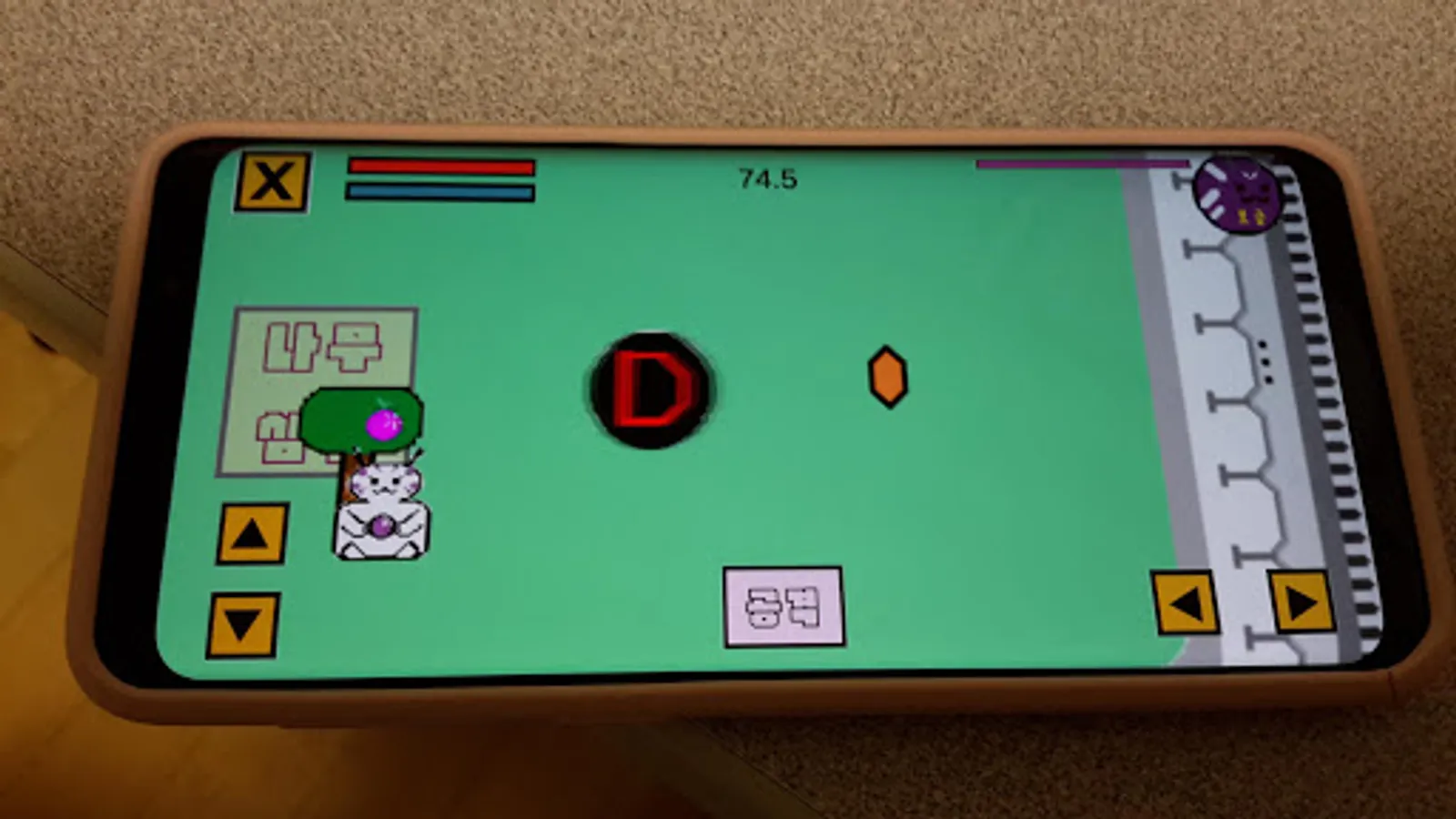 Stage D is a game where you use your weapon to defeat the enemy within the time limit. (Weapons can only be used once per charge, and when a seed is planted to grow a tree, the weapon is recharged if it goes near the tree.)