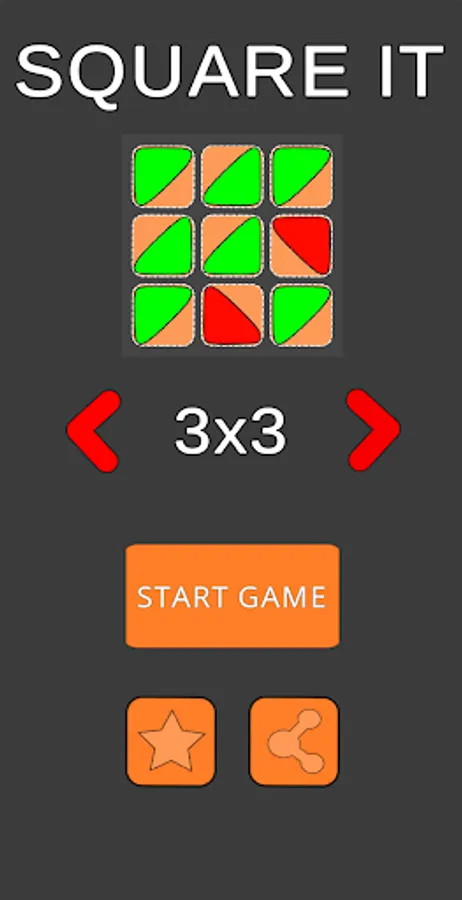 Create square by joining triangles. Supports tiny (2x2), classic (3x3), medium (4x4) and big (5x5) board sizes.