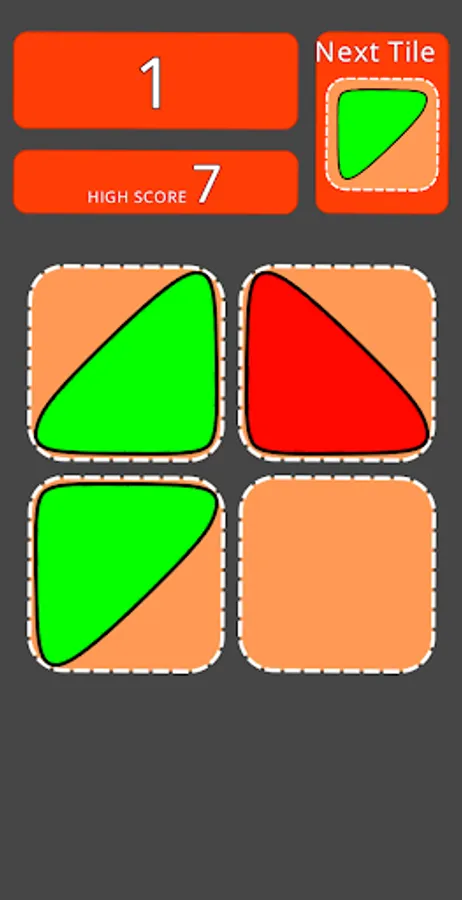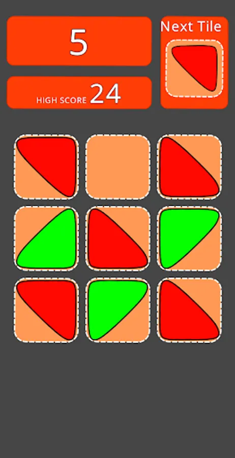 Swipe (Up, Down, Left or Right) to move the tiles. When two triangular tiles with the same color touch, they merge into a square. Get High Score by collecting as many squares as possible.