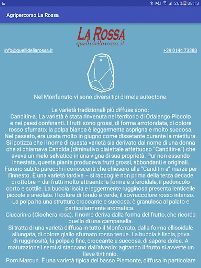 Find the points of interest (Estimote Proximity Beacons) along the path around the Agriturismo La Rossa, Morsasco, Piemonte, IT. Discover the castles of Monferrato, flora and fauna typical of the southern Piedmont, learn about the typical grapes of this land and with us ... savor its delights!