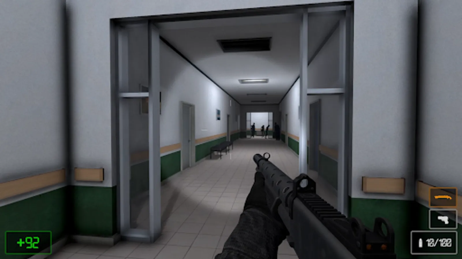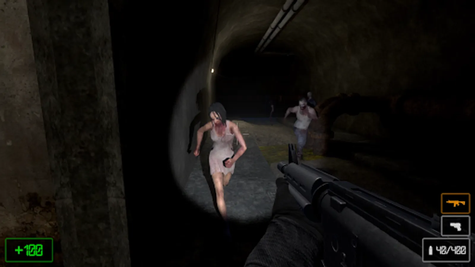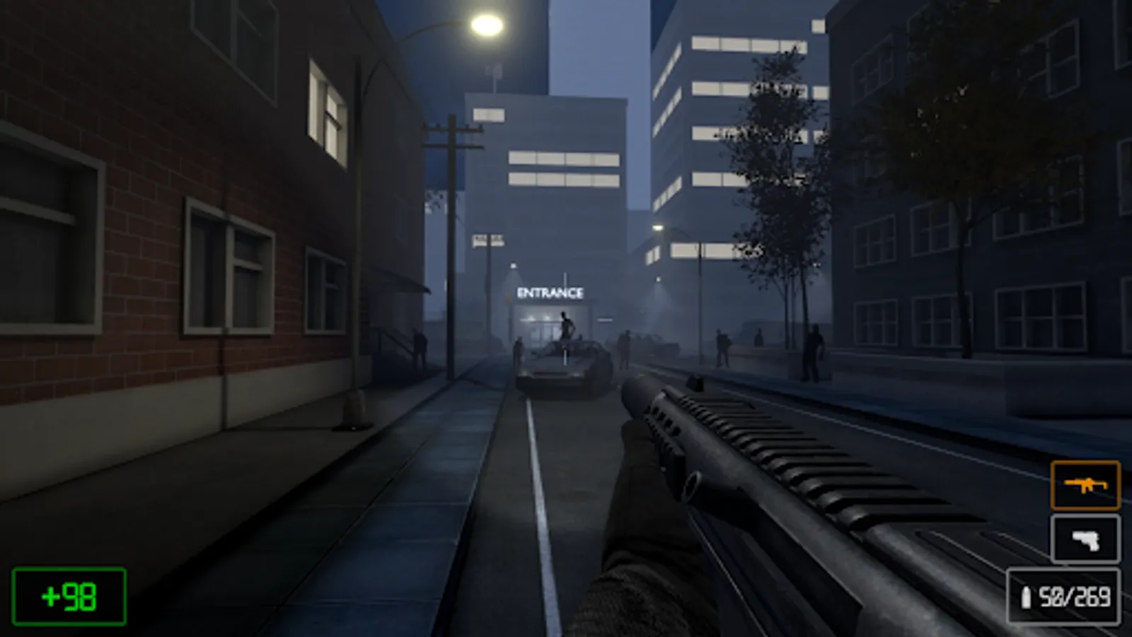 In this game you have to fight your way through hordes of zombies in search of a safe place. Be careful, the dead are very fast and ruthless. Try to explore the surroundings to find weapons, ammo and first-aid kits.