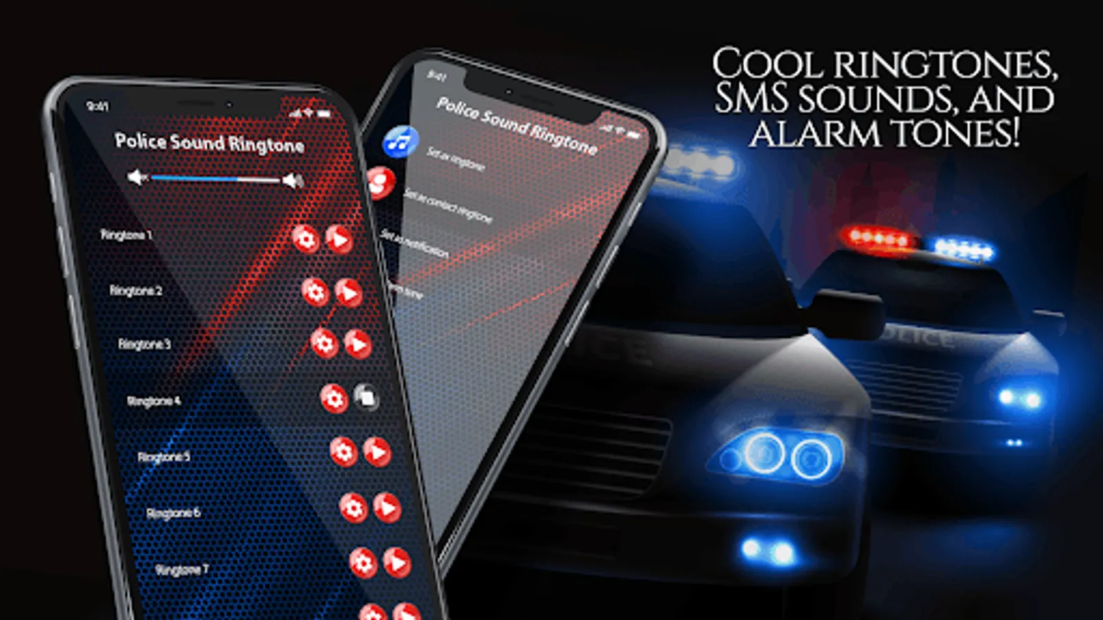 * Change different police ringtones and notification sounds whenever you want.