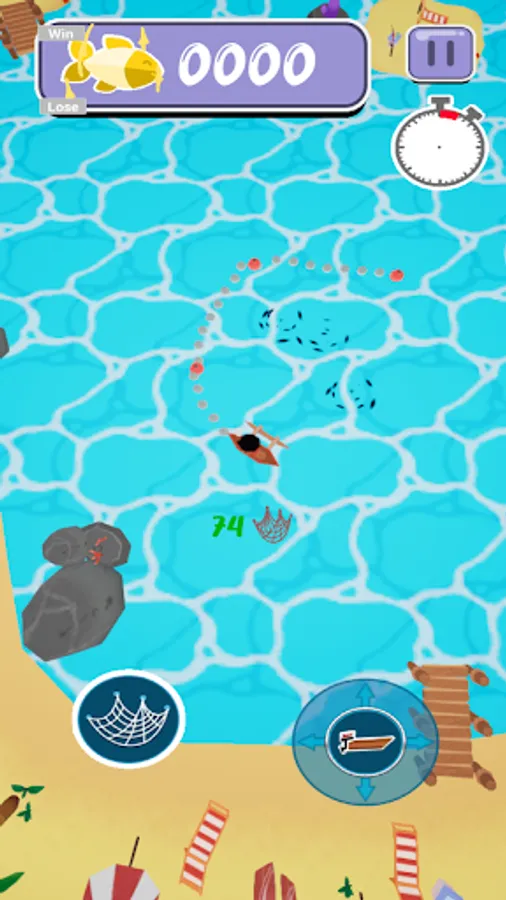 -The first mini game is a fishing game where you will wander around a lagoon looking for fish to catch using your net