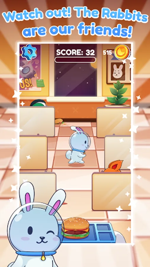 But do be careful, there are innocents to avoid in Food Fight! They're simple rabbit students trying to have lunch.Hitting a Rabbit will end your session, so keep your eye out for them!